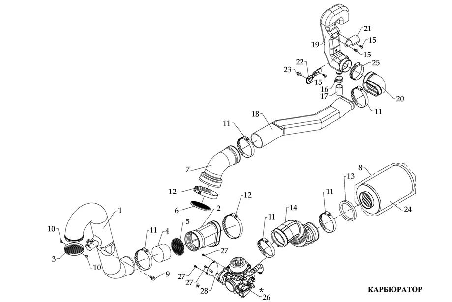 Патрубок воздушного фильтра, резина F210028-00